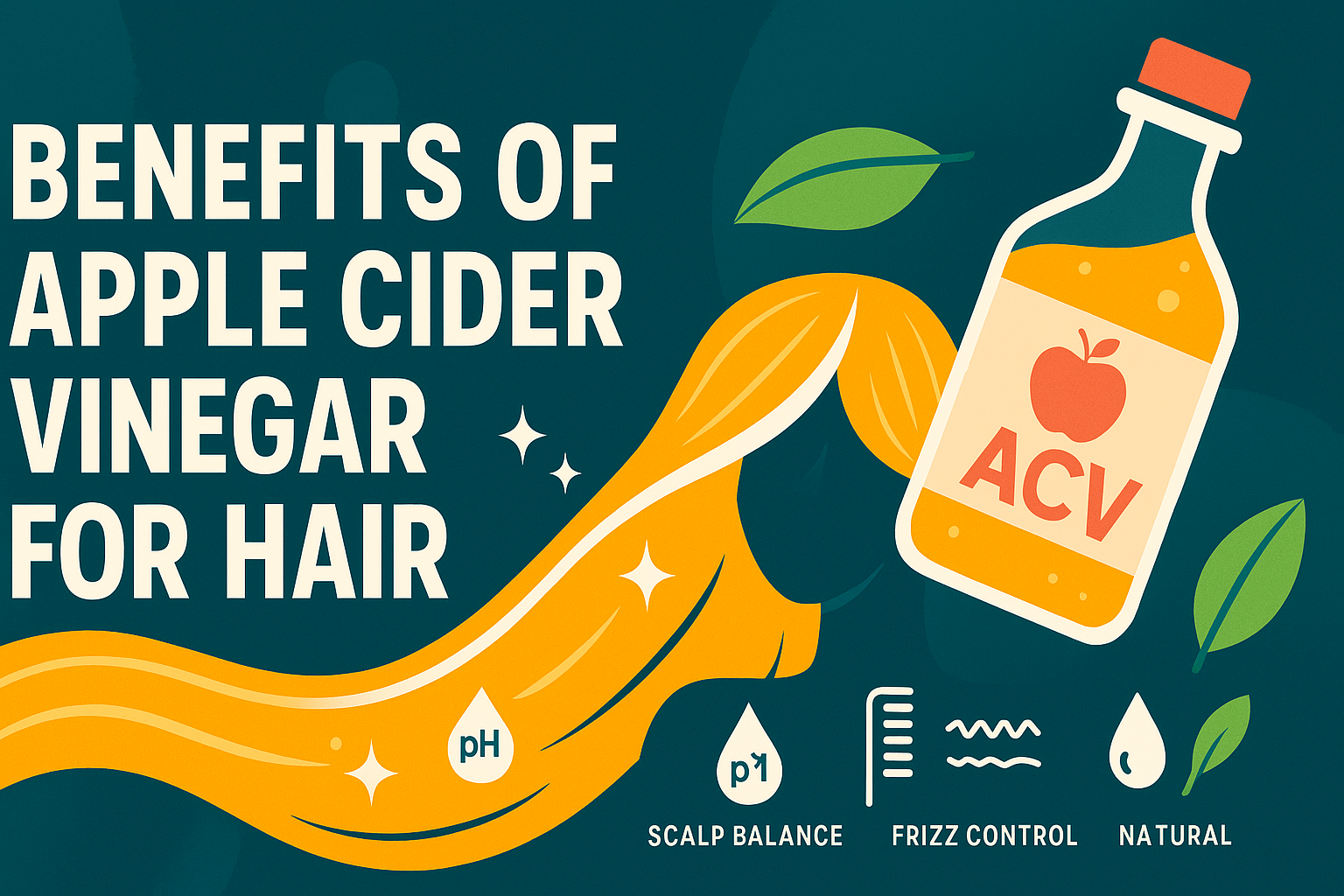 Apple cider vinegar, with a pH of 2-3, restores hair and scalp pH balance to their healthy range (hair: 3.7; scalp: 4.5-5.5), preventing dryness and breakage.