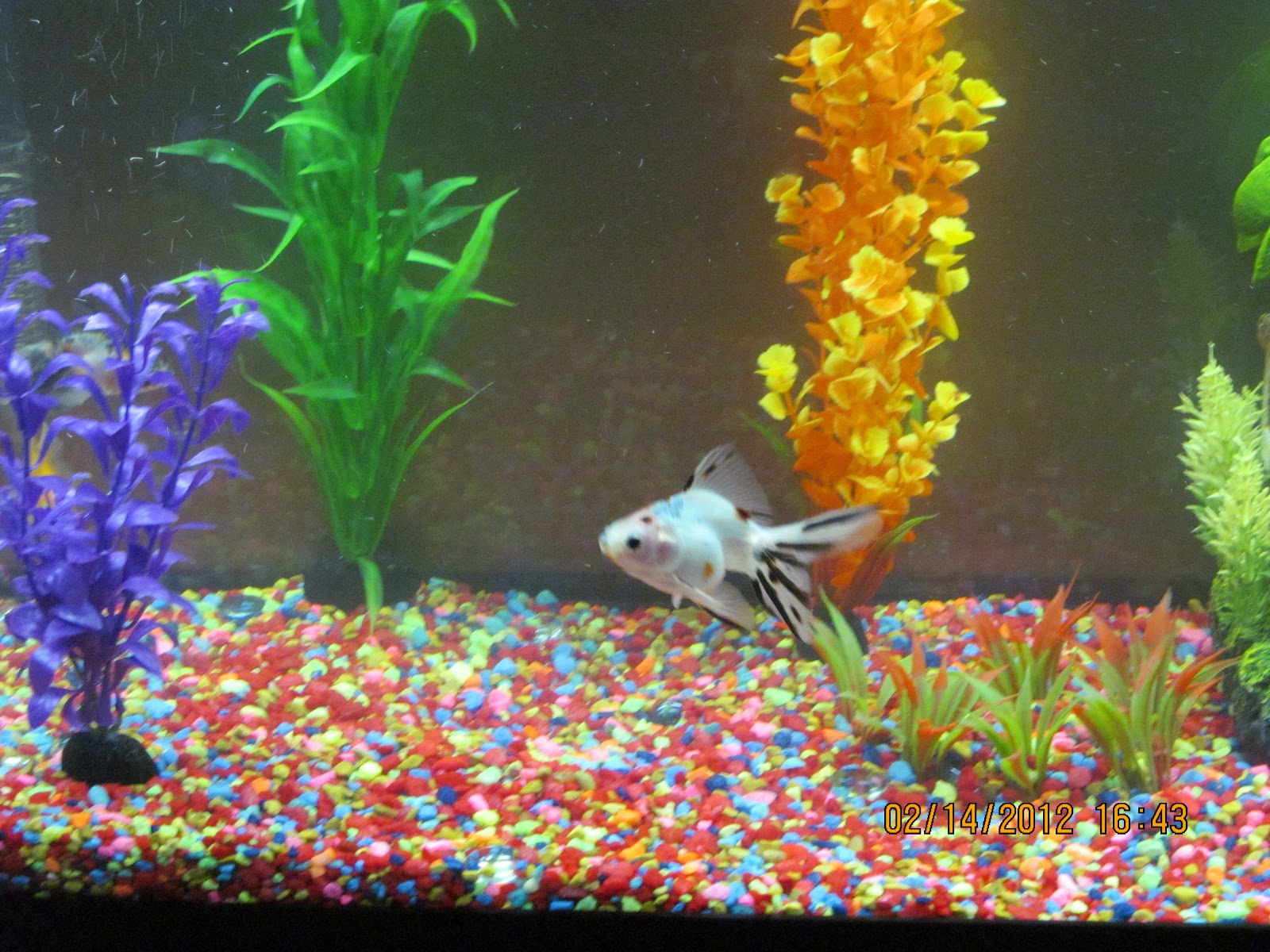 Once she saw her fish, she calmed right down. (We have eight other fish too, but she points out her fish every time. She gets excited too.)