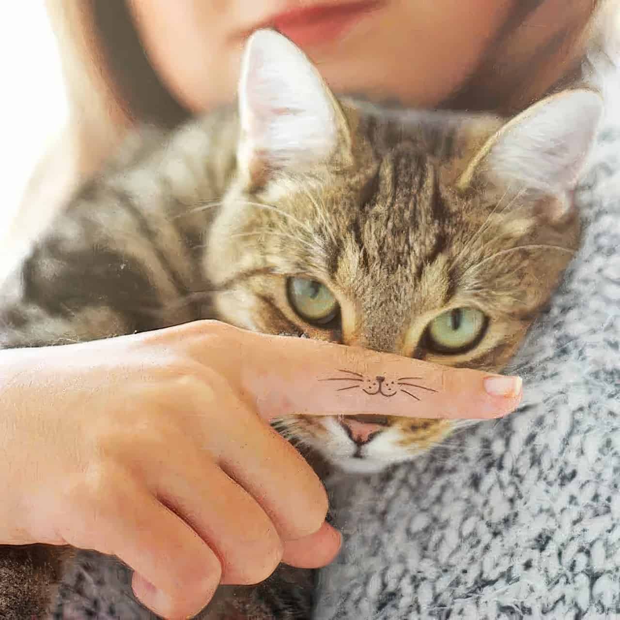 One cool thing about these tattoos is how they can look super delicate and subtle. You might choose just a small part of your cat, like its face or paws, and tuck it somewhere special on your body.