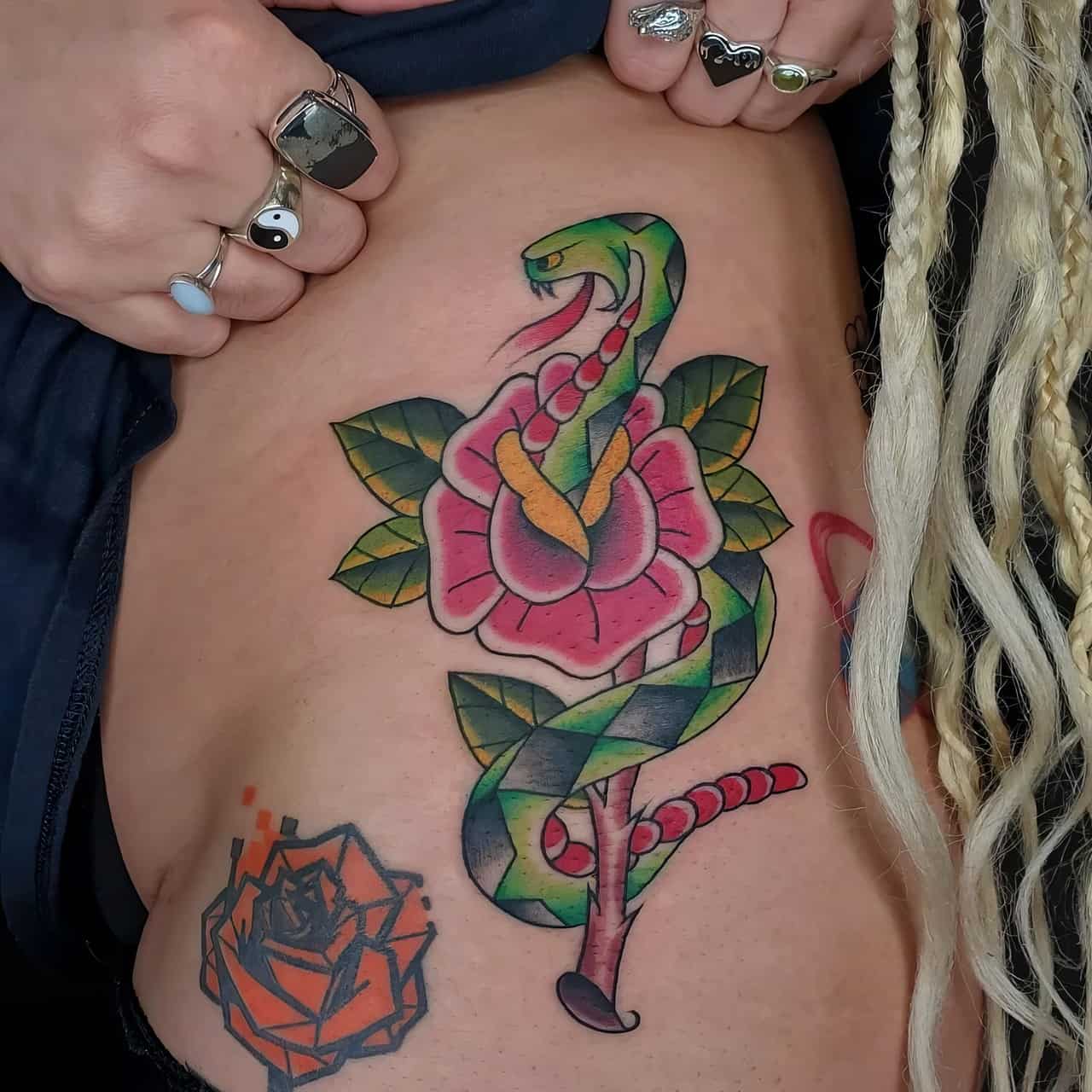Ah, the bold rose tattoo—a true classic. Its vibrant petals and thorny stems captivate with a timeless, passionate allure. Whether a single bloom or an intricate floral arrangement, this tattoo radiates undeniable beauty and strength.