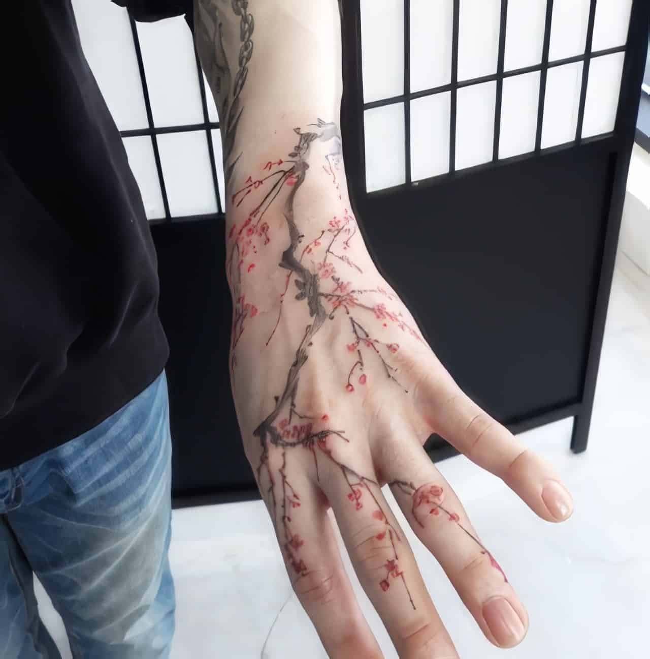 A cherry blossom tattoo reflects the delicate balance of life. Its intricate petals – a reminder to embrace each moment. Unfolding stories of impermanence, strength, its meaning transcends mere aesthetics.