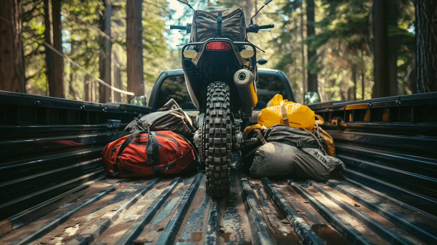 If you’re dealing with a truck or trailer, consider adding a wheel chock or stand. This extra step is like giving your motorcycle its own pair of sturdy boots, making sure it doesn’t tip over when hitting those off-road bumps.
