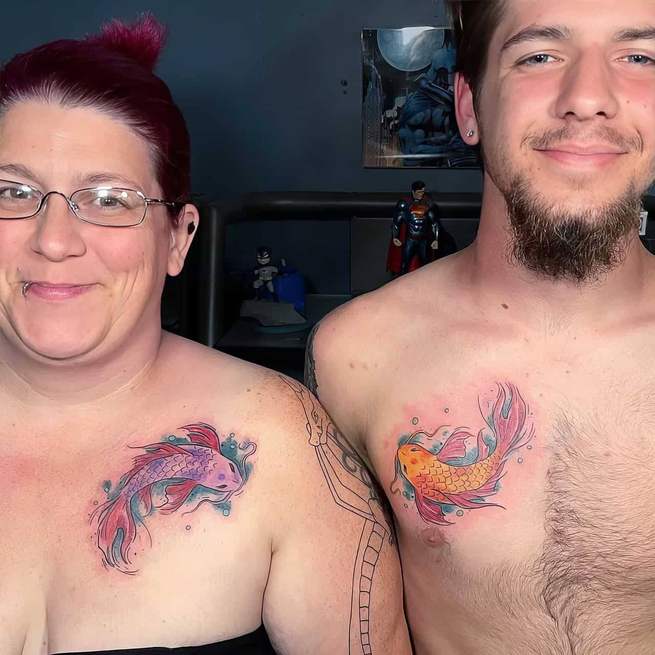 These matching tattoos often mix in cool ideas like music notes if we both love jamming out, or anchors if we’ve been each other’s rock during tough times. They’re not just pictures; they’re memories and promises made visible.