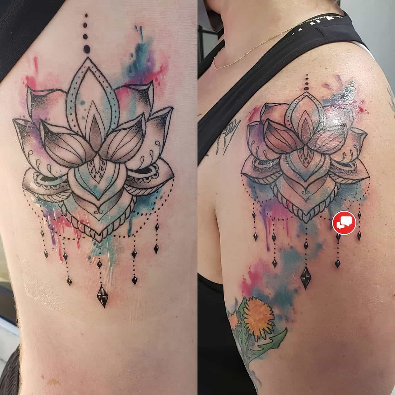 Now let’s jazz it up! Maybe we add in our initials or pick colors that pop. Or go wild with a tiny bee or butterfly sitting on one of the leaves – because life is all about those little extras, right? This tattoo could be our secret handshake inked right into our skin – unique to us and packed with all the feels.