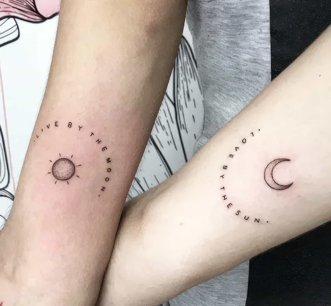 - Matching sun and moon tattoos showing how they light up each other’s lives.