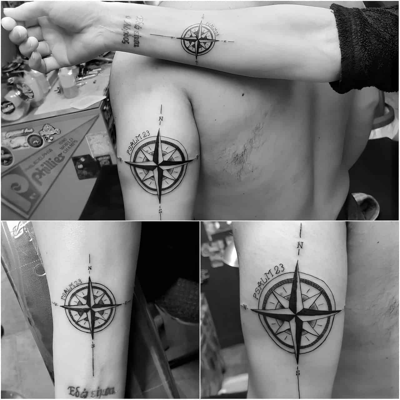 Now, if guitars sing the song of our bond, a compass design shows the way ahead. I love how this tattoo has such deep meaning. It tells us about direction and sticking together through life’s journey.