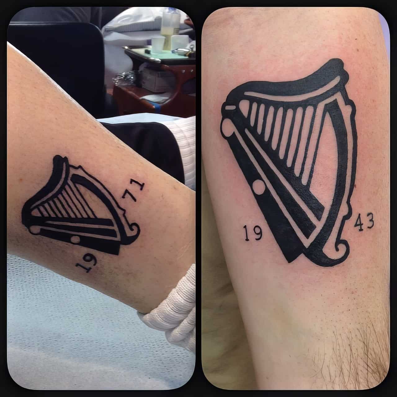 Let’s talk about the guitar symbol. It’s perfect if we both love strumming chords and getting lost in music together. Picture this: a tiny guitar tattoo that sings of our bond every time we look at it.