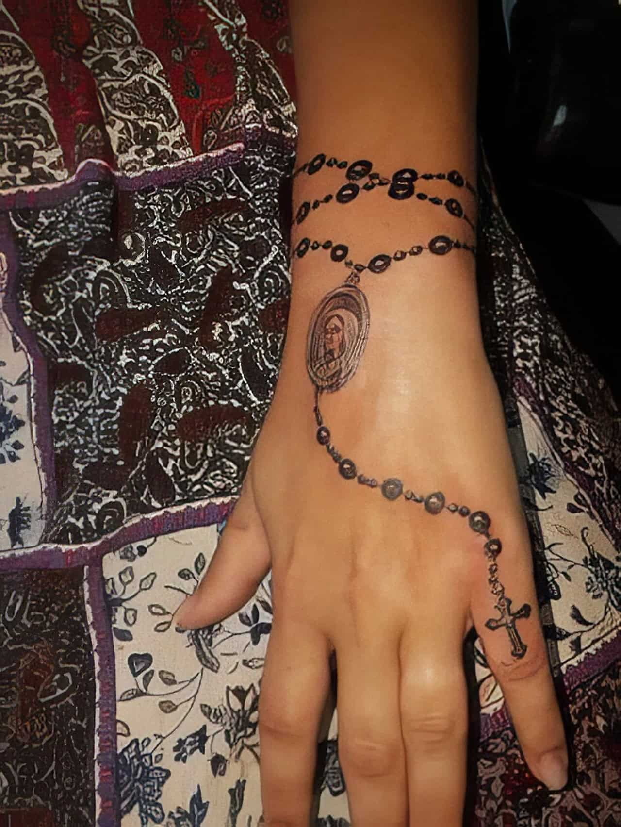 Many ladies opt for a rosary tattoo on their wrist too. It’s like having a mini prayer reminder right there on your skin!